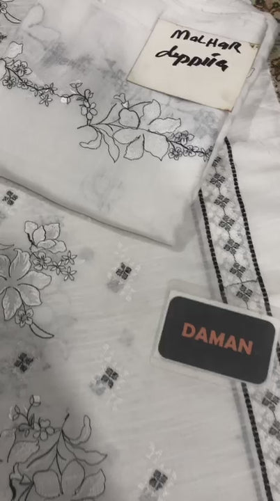 Premium Self Lawn White Suit | Heavy Embroidery Front & Malhar Dupatta